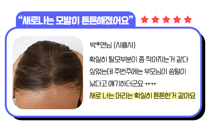 국내유일 모발생장촉진 특허를 받은 이유를 알거 같습니다. 번창하시길 바랍니다.