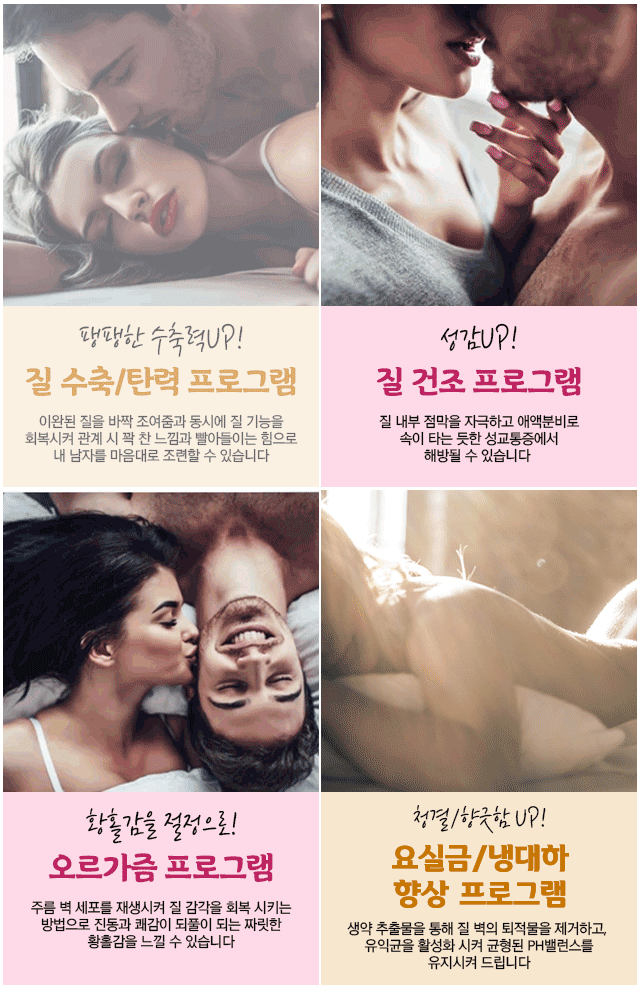 그동안 아무에게도 말 못했던 여성 불감증, 갱년기 등으로 성기능에 불편을 겪고 있다면 이제는 적극적으로 내 문제를 하루빨리 해결하여 당신은 사랑 받아 마땅한 사랑스런 여성이라는 걸 각인 시켜주자.